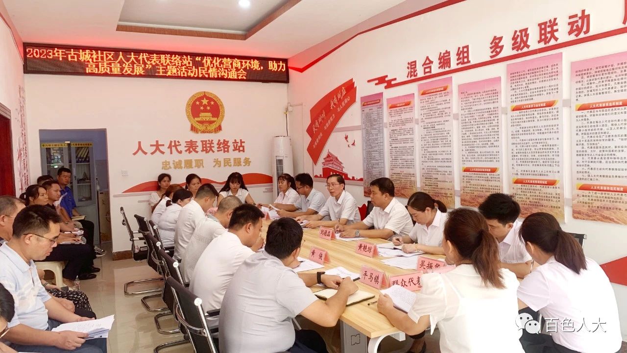 黄善平与驻站各级人大代表先后到“挺进右江”红色旅游线路、古城社区党群服务中心、田东中兴城进行了实地考察,了解营商环境情况和存在的问题困难,并针对“挺进右江”红色旅游线路红色元素不足等问题进行了深入研究探讨。随后,代表们围绕“优化营商环境,助力高质量发展”主题在古城社区人大代表联络站召开民情沟通会。会议听取了2022年联络站重点建议办理情况并开展了满意度测评,平马镇人民政府汇报了开展“优化营商环境,助力高质量发展”工作情况,代表们和基层群众围绕主题提出了意见建议,有关部门负责同志作了现场回应。会议还一致通过了2023年联络站重点建议。