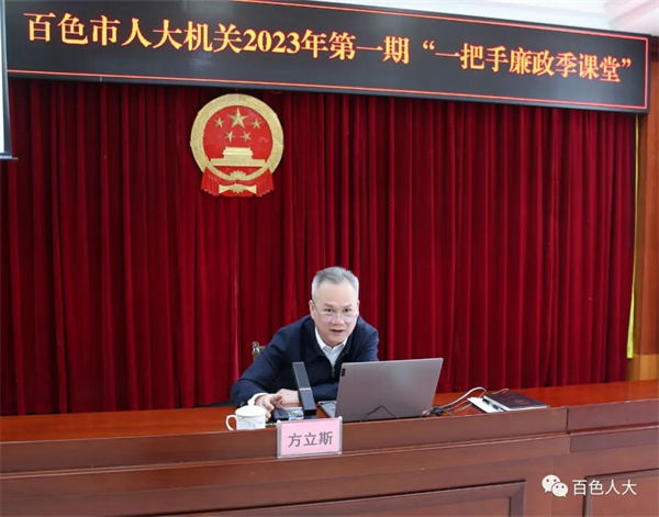 3月31日,市人大机关开展2023年第一期“一把手廉政季课堂”活动。市人大常委会秘书长、办公室主任,机关党组书记方立斯以《在严守纪律规矩上当模范作表率》为题,为机关全体干部职工上了一堂廉政党课。